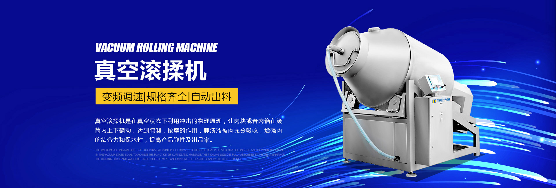 公司主要生產(chǎn)不銹鋼制品食品機(jī)械:各種規(guī)格型號(hào)真空滾揉機(jī)、制冷滾揉機(jī)、提升機(jī)、電加熱夾層鍋、肉丸機(jī)、真空攪拌機(jī)、絞肉機(jī)、灌腸機(jī)、打卡機(jī)、線(xiàn)扎機(jī)、斬拌機(jī)、鹽水注射機(jī)、煙熏爐、油炸機(jī)、巴氏殺菌線(xiàn)、連續(xù)油炸線(xiàn)、肉丸成型水煮線(xiàn)、醬鹵生產(chǎn)線(xiàn)、肉丸破碎機(jī)、真空包裝機(jī)、洗袋風(fēng)干機(jī)、豬頭劈半機(jī)、不銹鋼火腿模具、肉斗車(chē)、案桌、煙熏車(chē)、屠宰類(lèi)機(jī)械設(shè)備、清洗風(fēng)干設(shè)備、肉類(lèi)解凍設(shè)備、滾筒拌料機(jī)等。產(chǎn)品廣泛適用于火腿腸、肉丸、肉串、鹵制品、海產(chǎn)品、禽類(lèi)深加工、油炸、泡椒風(fēng)味、速凍水餃、魚(yú)豆腐、千葉豆腐、豆腐干、牛肉干、牛排雞排類(lèi)、禽蛋、麻辣、休閑、水果蔬菜清洗、中央廚房、餐飲連鎖、寵物食品等食品生產(chǎn)。