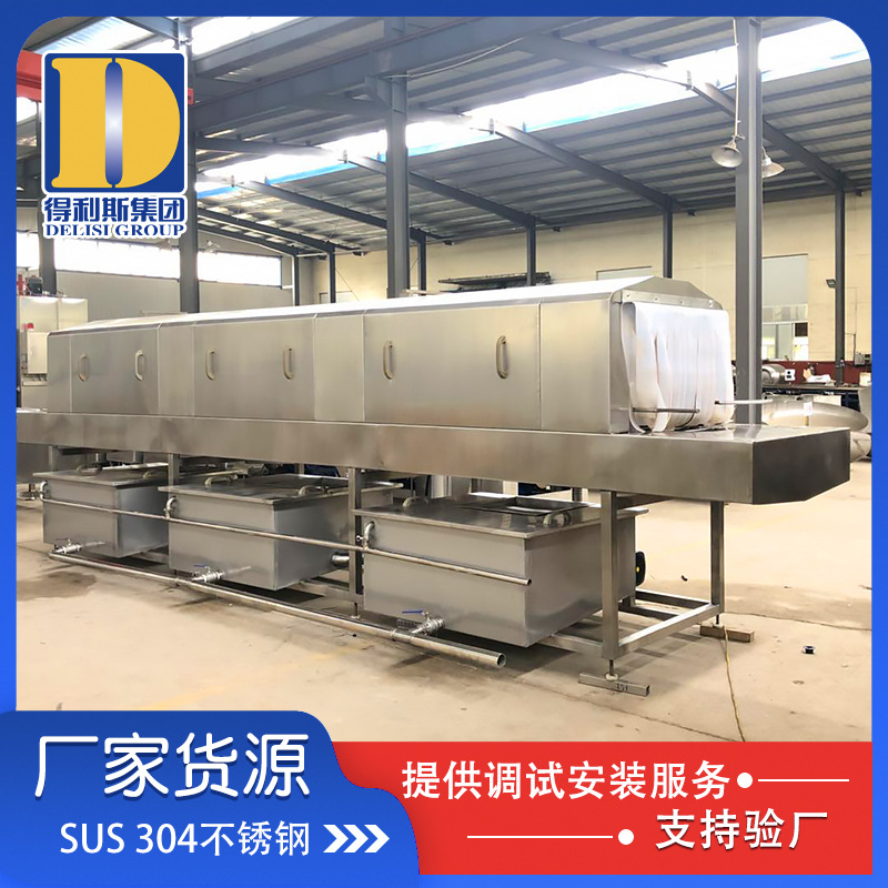 2. 設(shè)備有熱堿水噴淋段、熱水噴淋段、清水噴淋段、消毒水噴淋段、烘干段等幾部分組成,其中消毒水噴淋段及烘干段可根據(jù)客戶要求定配。