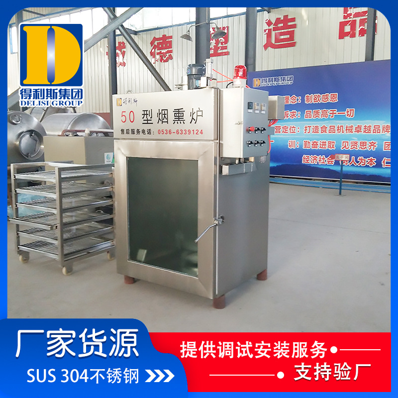 煙熏爐具有蒸煮、干燥、煙熏、清洗及安全保護等功能,有小型煙熏爐,全自動煙熏爐,半自動煙熏爐等多個型號以及內(nèi)置發(fā)煙和外置發(fā)煙兩種發(fā)煙方式。全自動煙熏爐是由電腦自動化控制 7寸維綸屏畫面,在一個畫面上同時顯示各種參數(shù),以便監(jiān)控運行狀態(tài);全自動煙熏爐可實現(xiàn)遠程控制;打印配方、溫度、濕度曲線;全自動煙熏爐可儲存至少99個工藝配方。風循環(huán)系統(tǒng) 使產(chǎn)品在烘烤、蒸煮、干燥、煙熏等過程中的溫度、濕度的一致性,從而保證了產(chǎn)品的著色均勻,色澤美觀。
